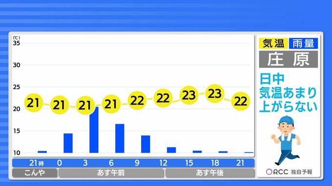 こんやからあす朝にかけて、ほとんど気温が下がらず、引き続き寝苦しい夜になります。その後日中にかけても、北部ではほとんど気温変化のない一日になる見込みです。湿度が引き続き高く、ジメッとした陽気になるでしょう。