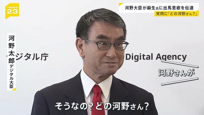 自民党総裁選への出馬について聞かれ、「誰が?」「どの河野さん?」こうはぐらかした、河野太郎デジタル大臣。所属する派閥トップの麻生氏に総裁選出馬への意欲を伝えたことがわかりました。