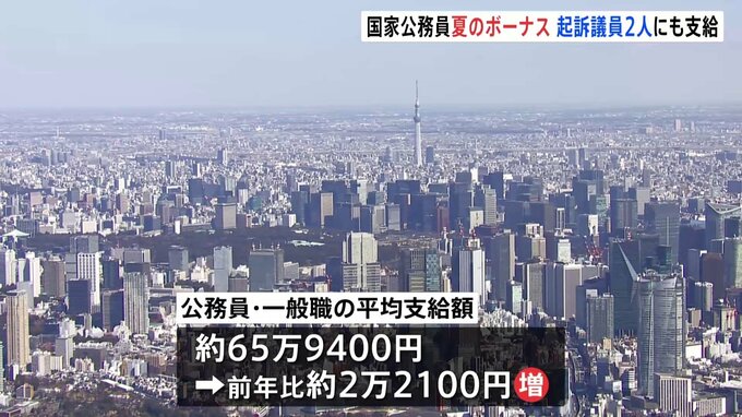 国家公務員に夏のボーナスが支給されました。汚職などで起訴され、国会に一度も出席しなかった2人の議員にも、それぞれ支給されています。国家公務員の「期末・勤勉手当」がきょう支給され、一般職の平均支給額は…