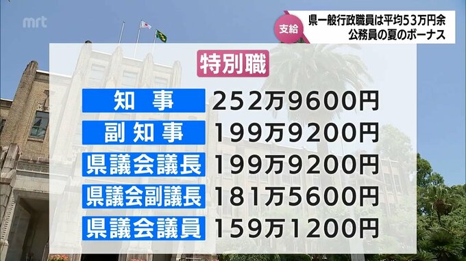 公務員に、28日、夏のボーナスが支給されました。宮崎県の一般行政職員の平均支給額は53万円余りで、去年より2万円余り高くなっています。県は、警察官や教員、それに今年度から勤勉手当の支給対象になった会計年…