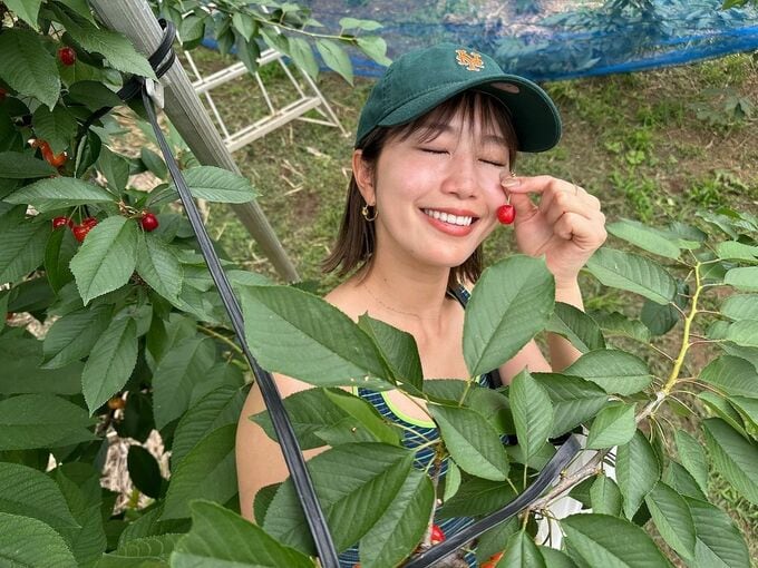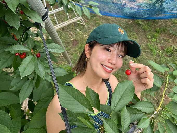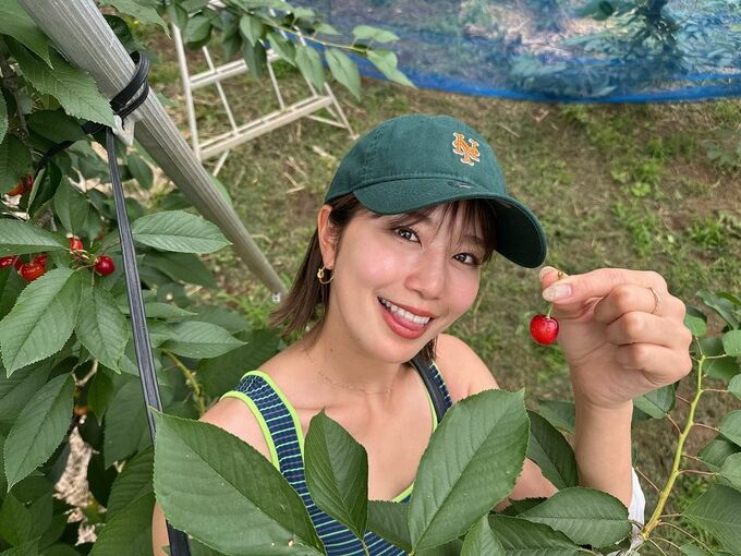 26日、タレントの稲村亜美さんが自身のインスタグラムを更新し、さくらんぼ狩りでの写真を投稿しました。