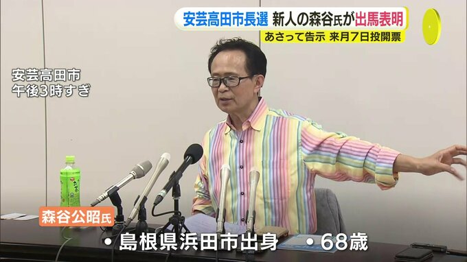 30日告示される安芸高田市長選挙に、会社経営で諸派の新人、森谷公昭氏が立候補を表明しました。