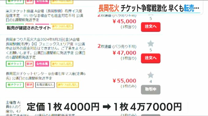 長岡花火財団は、チケットを手放す際は「7月8日に開設する再販売サイトを」と呼びかけています。ただ、この再販売で去年およそ1500件の配送ミスもありました。