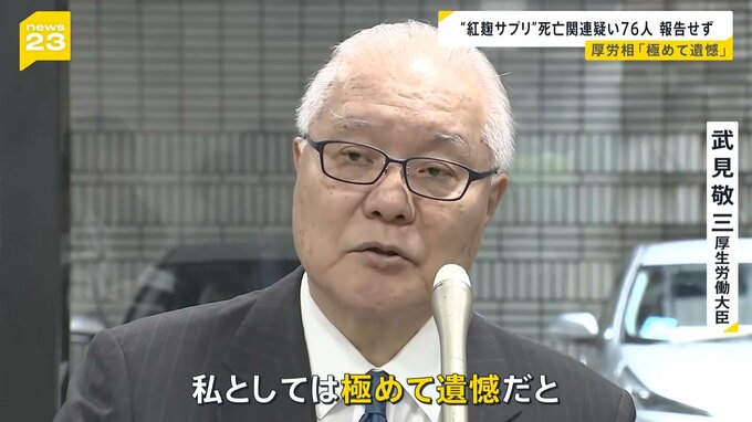 小林製薬の「紅麹」の成分を含むサプリメントを摂取した人に健康被害が出ている問題。死亡との関連が疑われる事例が、新たに76人に上ることが分かりました。