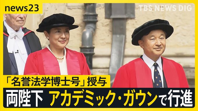 イギリスを訪問中の天皇皇后両陛下は、ともに留学した思い出の場所、オックスフォードを訪問されました。陛下が1991年に授与された「名誉法学博士号」が皇后さまにも授与され、両陛下は“アカデミック・ガウン”を…