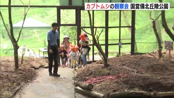 子どもたちに自然に親しんでもらおうと、庄原市の国営備北丘陵公園でカブトムシの観察会が開かれています。