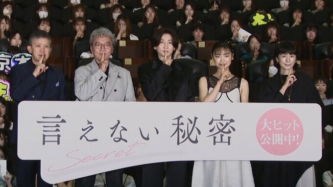 SixTONESの京本大我さんが初の映画単独主演を務めた「言えない秘密」 公開記念舞台挨拶が行われ、共演の古川琴音さん、西田尚美さん、尾美としのりさん、河合勇人監督と共に登壇しました。