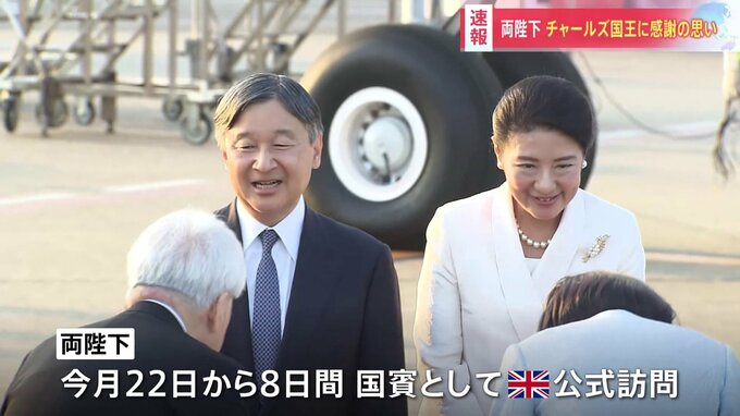 天皇皇后両陛下は先ほど、イギリス公式訪問を終え、帰国されました。両陛下は文書を発表し、「すばらしいおもてなしを頂いた」と感謝を綴られました。先ほど午後6時ごろ、両陛下は羽田空港に到着し、出迎えた秋篠…