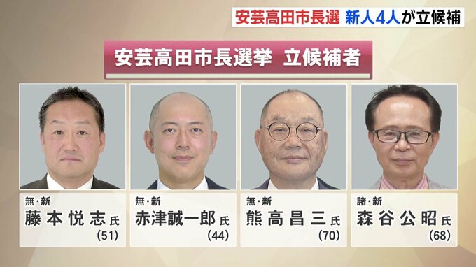 安芸高田市長選挙に立候補したのは、届け出順にいずれも新人の、