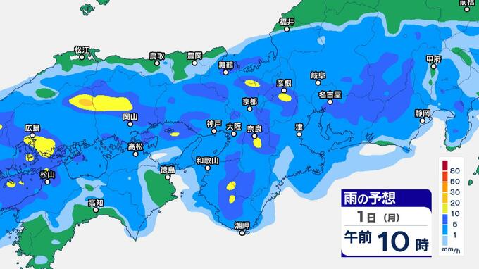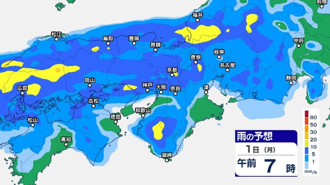 通勤や通学の時間帯を激しい雨が直撃するところもありそうです。気象庁によりますと、西日本から東日本では2日にかけて、北日本では1日は、土砂災害、低い土地の浸水、河川の増水や氾濫に厳重な警戒が必要です。