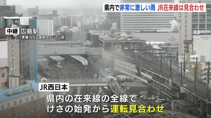 この大雨の影響でJR西日本は、県内の在来線の全線でけさの始発から運転を見合わせています。