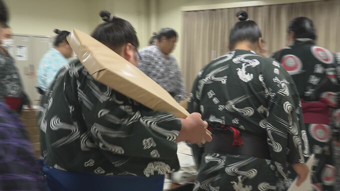 名古屋場所の会場となる名古屋市中区のドルフィンズアリーナでは、1日午前6時に番付表が配られ、部屋の若い力士たちが重い束をそれぞれの部屋に持ち帰りました。
