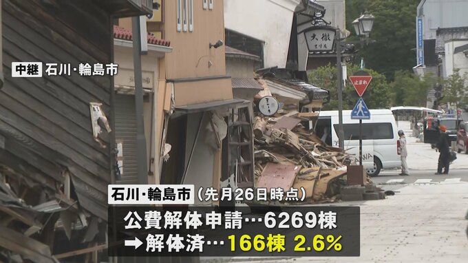 能登半島地震では11万棟を超える建物が被害を受けました。輪島市では先月26日までに、6269棟の公費解体の申請を受け付けましたが、解体が済んだのはわずか166棟。この公費解体の遅れが能登復興への足かせとなっています。