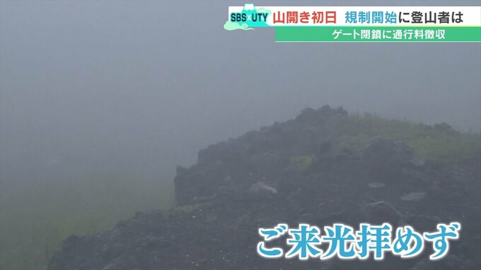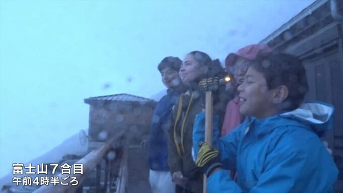 「本来、ご来光が見える時間ですが、きょうは雲がかかっていて見ることができません。」