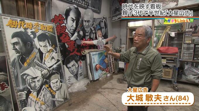 敏夫さんは20歳のときに映画広告の世界に飛び込み、手書きの看板職人として活躍。しかし時代の移り変わりとともに印刷の看板が増えはじめ、看板職人への需要が減っていくと、所帯を持ったことをきっかけに、34歳のとき、広告全般を扱う会社を起こした。