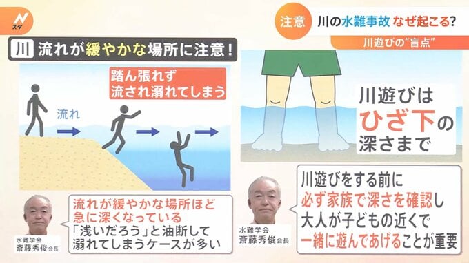 子どもの水難事故の約5割が川で起き、この夏は“警報級”の多さだといいます。「溺れた時」なぜ手をあげてはいけないのか。そして「助ける時」何をすればよいのか。緩やかな川の流れに潜む危険は?服を着たまま溺…