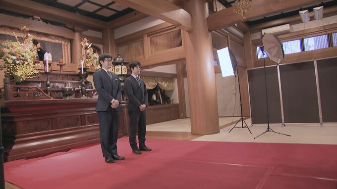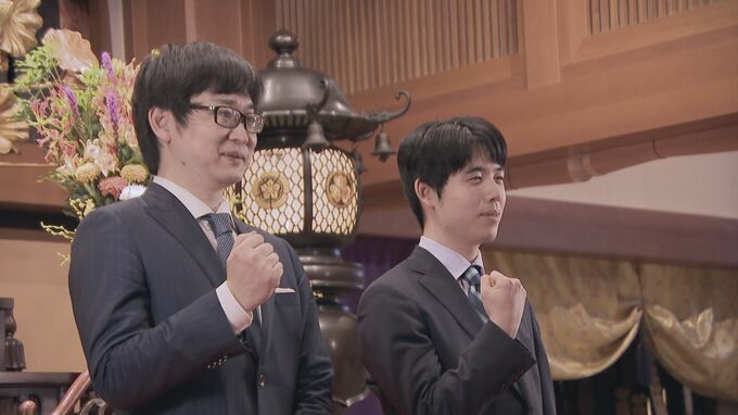 6月30日、大一番を前に藤井七冠と山崎八段はまず、対局場となる名古屋市中区大須の「万松寺」本堂の1階で記念撮影をしました。