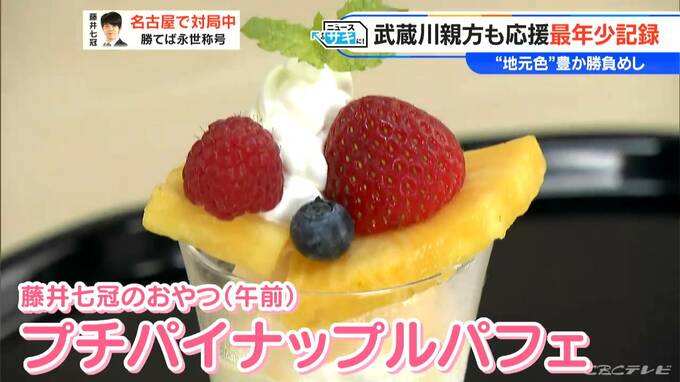 また、午前のおやつは藤井七冠は大須のフルーツパーラー檸檬屋(れもんや)の「プチパイナップルパフェ」を注文。