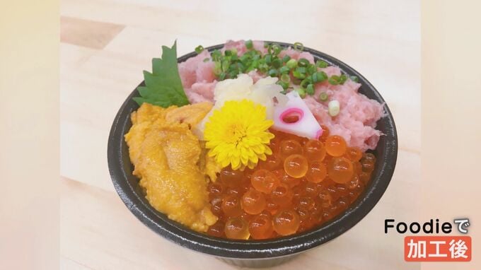 Foodieを使うと海鮮丼はきらびやかに変身!トマトのパスタは赤がより際立ち、食欲をそそります。