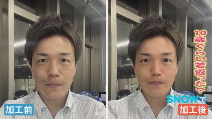 ということで、34歳の南波アナウンサーも加工アプリに初挑戦。