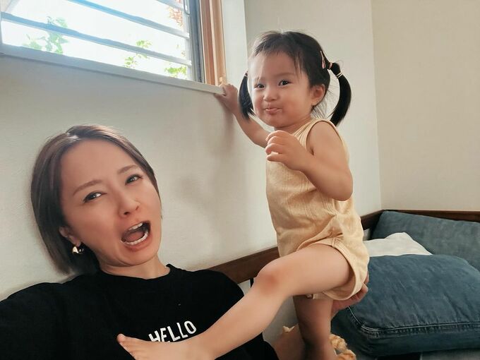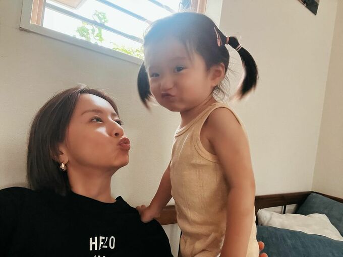 そして「我が家では娘が手足口病で只今保育園おやすみ中で、でも本人はめちゃくちゃ元気なので一日中振り回されていますが、楽しくやっております!」と、娘との2ショット写真と共に報告しました。