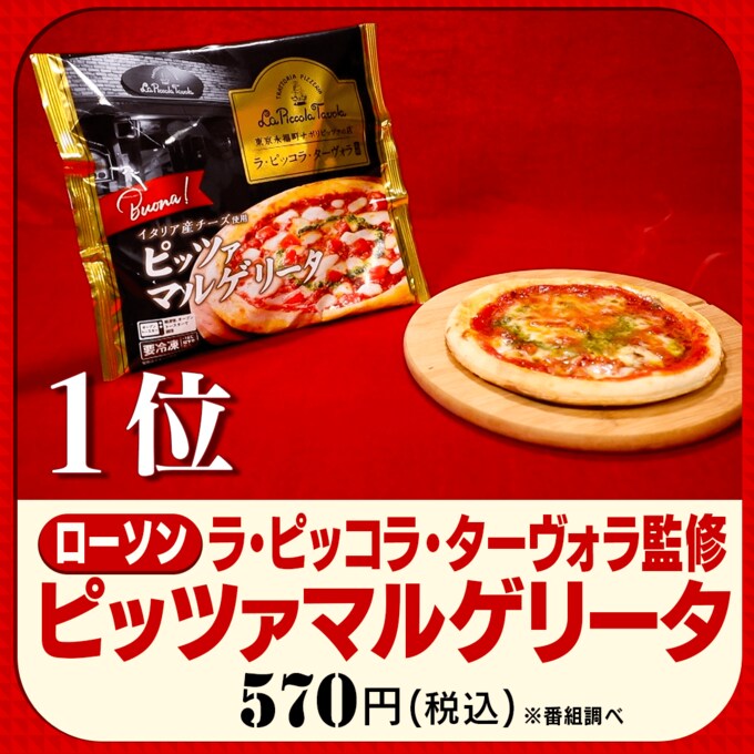 そして第1位は、ローソンの『ラ・ピッコラ・ターヴォラ監修ピッツァマルゲリータ』(税込570円 ※番組調べ)。