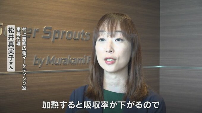 「よく噛むことで(スルフォラファン)の吸収率がアップする。加熱すると吸収率が下がるので、できれば生でよく噛んで召し上がっていただけたら」