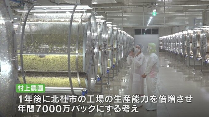 好調を受けて村上農園は1年後に北杜市の工場の年間生産能力を倍増させ、年間7000万パック作れるよう準備を進めています。