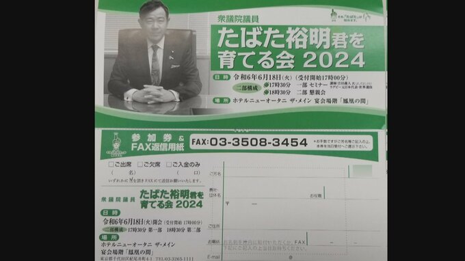 先月開催を中止した政治資金パーティーの案内状にあった「ご入金のみ」の項目が寄付の呼びかけに当たると指摘されていますが、田畑議員は「官邸筋や党本部から何ら指摘を受けなかった」などと述べ、違法性を否定しています。