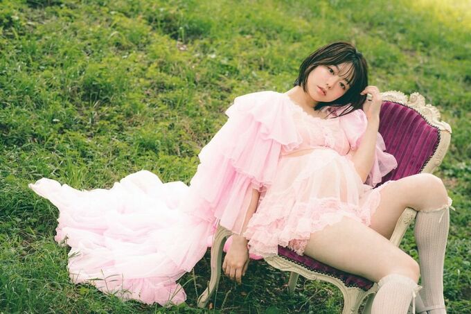 その後の投稿で、峯岸さんは「(赤ちゃん)が女の子ということで将来見せた時に『ママ可愛いね♡』と言ってもらえることを妄想して...とびっきり女の子モードの写真も」と、草原で椅子に座る姿も公開しています。