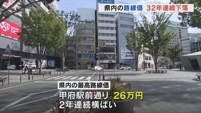 なお県内の最高路線価は甲府駅前通りで26万円となり2年連続の横ばいでした。