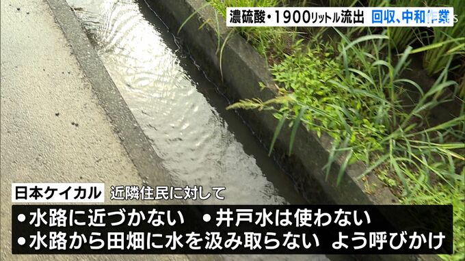 8月16日、静岡県浜松市北区の工場から、濃硫酸が最大1900リットル流出したことがわかりました。流れ出た水路では、16日から硫酸の回収や中和作業が進められています。<山口駿平記者>「こちらが硫酸が漏れ出たと…
