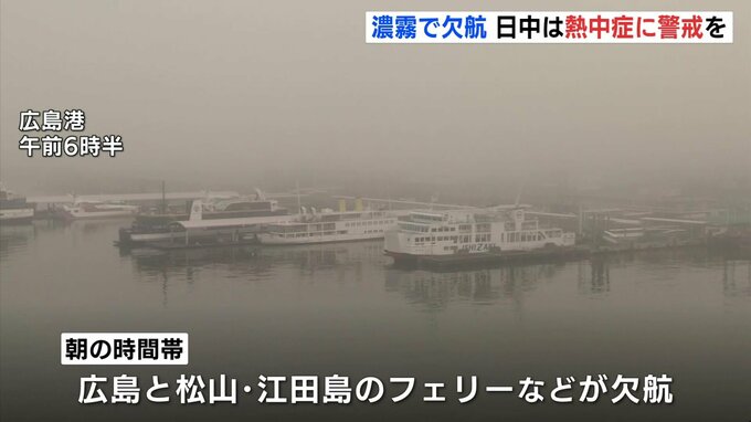 けさの県内は沿岸部を中心に濃い霧が発生しました。広島港を発着するフェリーに欠航が出るなどの影響がでています。
