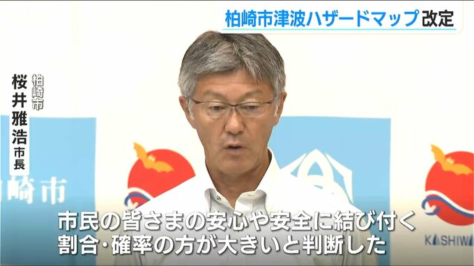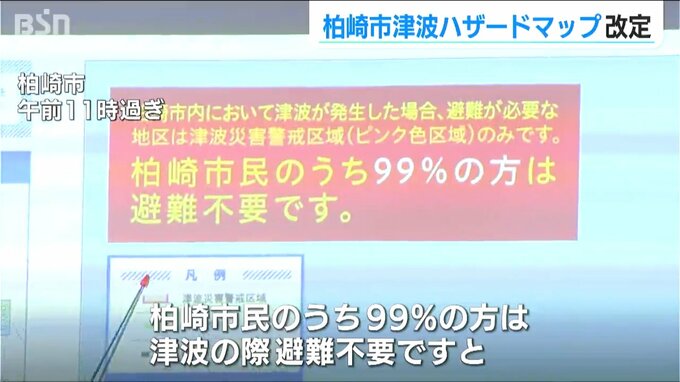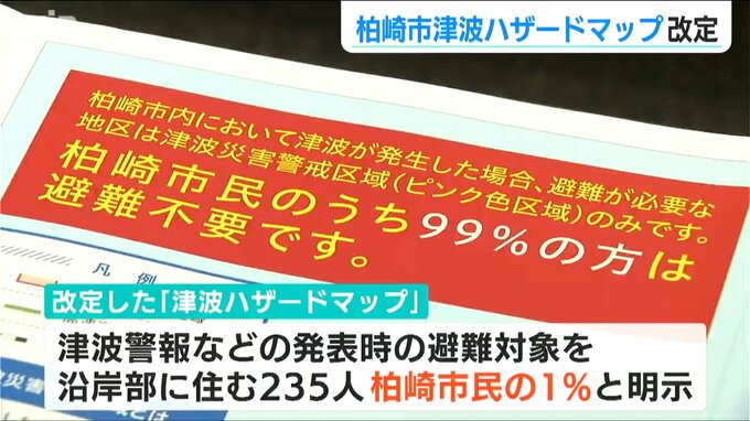 3日、柏崎市の桜井雅浩 市長が発表したのが改定した「津波ハザードマップ」です。浸水区域などはほとんど変わっていませんが、津波警報などが発表された際の避難の対象を沿岸部の9つの地区に住む235人、柏崎市民の1%のみと新たに明示しました。