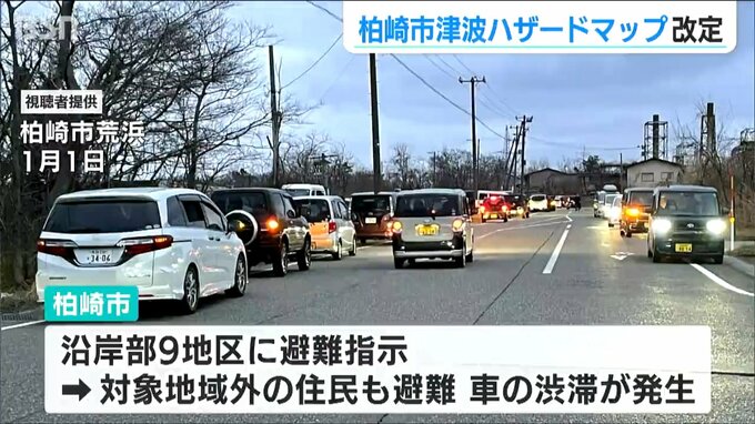 柏崎市では沿岸部9つの地区に避難指示が出され、高台への避難が呼び掛けられましたが、避難指示の対象地域外の住民も避難し、市内複数の箇所で車の渋滞が発生したのです。