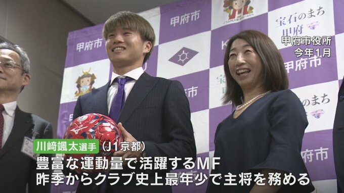 甲府市出身でJ1京都サンガFCに所属する川﨑颯太選手が選ばれました。
