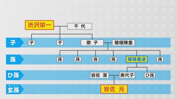 渋沢栄一の孫の孫ということで「玄孫」にあたります。