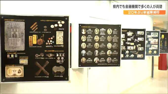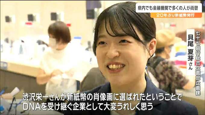 仙台市内の金融機関でも新紙幣の取り扱いが始まり、このうち七十七銀行本店では午前9時半からの取り扱い開始とともに多くの人が両替に訪れました。