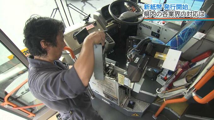 県内に145台のバスを保有する沖縄バスでは、いち早く新紙幣に対応。数千万円に上る投資で、9割ほどのバスですでに対応機に交換しています。