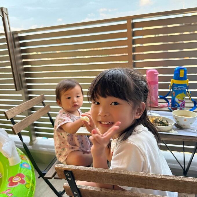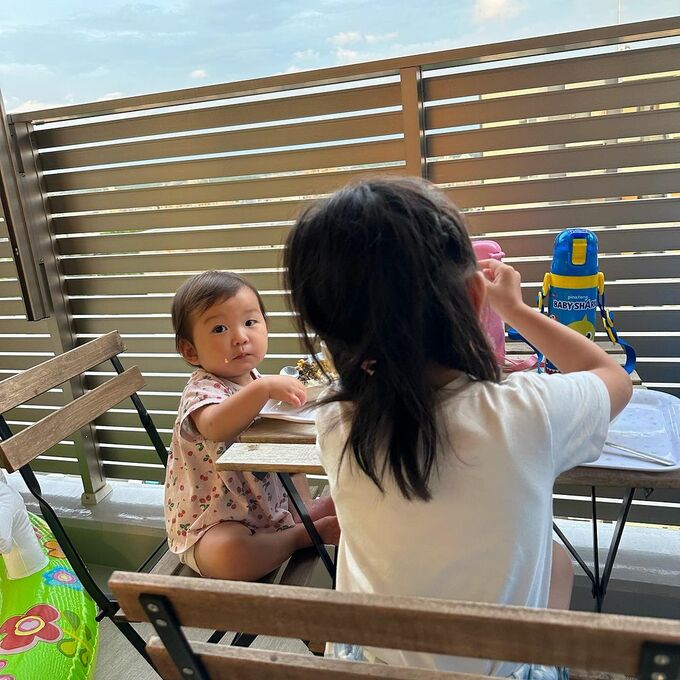 インスタグラムでは「ベランダで夕食を食べました ごはんを終えたらもちろんプール」と、妹と一緒に食事をしたり、水遊びをする写真をアップ。