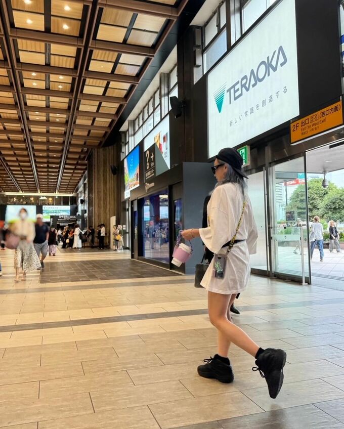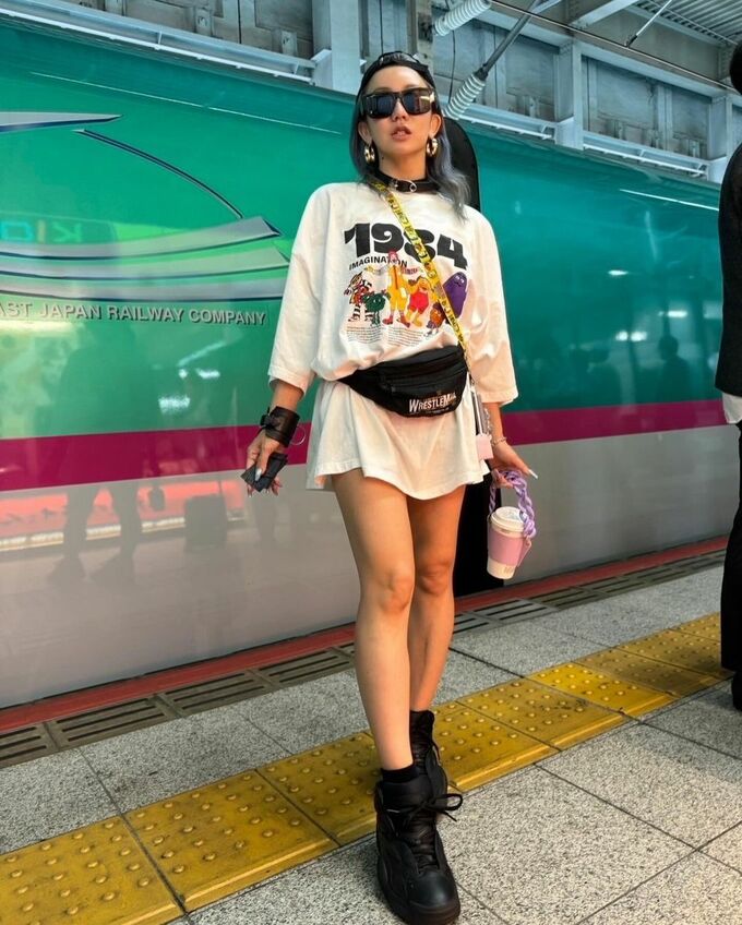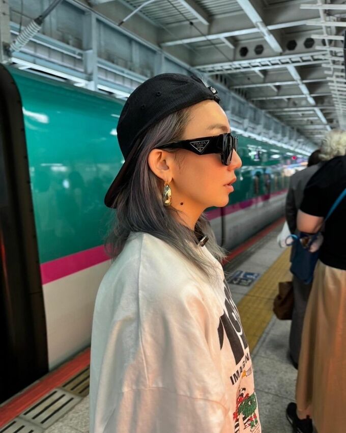 倖田さんは「KUMI♡MIYAGI」と綴ると、新幹線の前の前でたたずむ写真をアップ。
