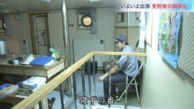 漁を終えた訓練生は、受刑服に着替えて北海丸に泊まる。出入り口では、“寝ずの番”が監視する。訓練生は、あくまでも受刑者なのだ。