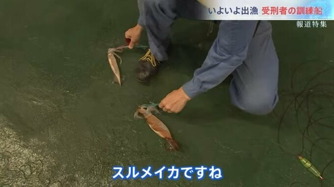 「スルメイカですね。(Q.どうですか気持ちは)めちゃくちゃ嬉しいです。本当にこの訓練に来られて良かった。(Q.普段の刑務作業で笑顔は?)(塀の中では)笑うと怒られますからね」