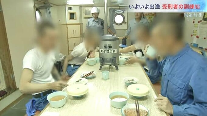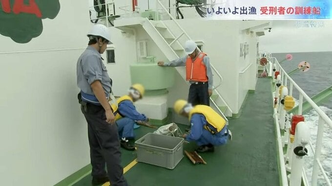 北海丸が埠頭を離れ漁場に向かう。舵を取るのは受刑者だ。他の船に注意しながら慎重に進む。