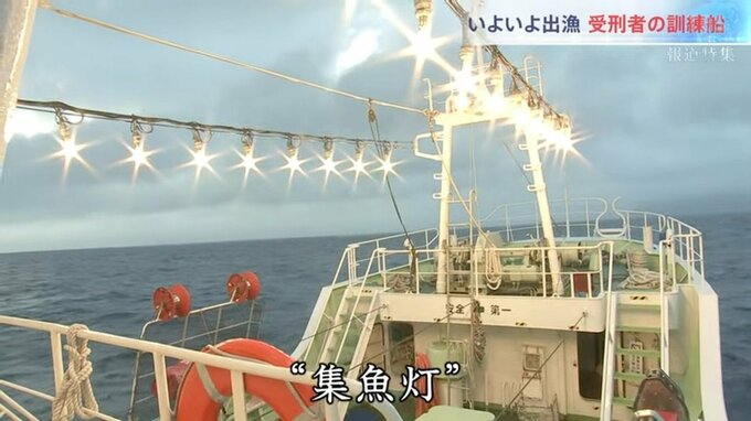 北海丸がイカ釣り漁に出る日がやって来た。当局が神経質になるのは、受刑者の“逃走”だ。何度もボディーチェックを受けて、ようやく塀の外に出る。