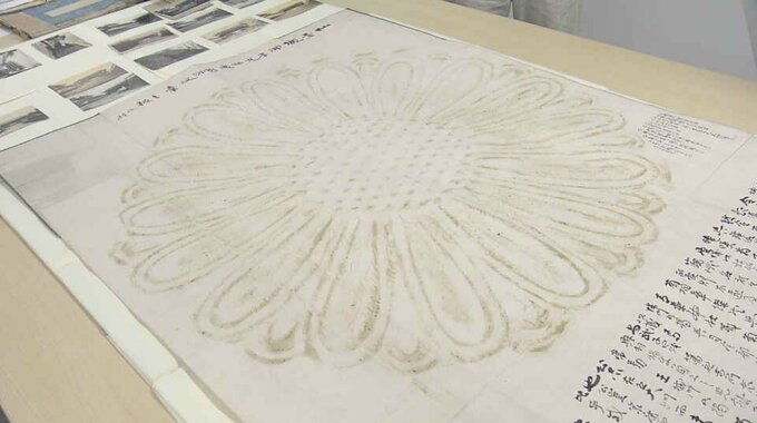 一方、こちらは、仙台城大手門につけられた菊の紋を写し取った拓本。