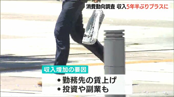 夏の消費動向調査で収入が5年半ぶりにプラスに転じたことが分かりました。物価上昇が続く中、投資や副業の動きも増えているということです。