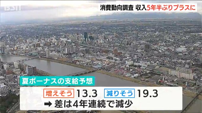 一方、夏のボーナスの支給予想では「減りそう」と回答した人が「増えそう」と回答した人を6.0ポイント上回りましたが、その差は4年連続で縮まっています。