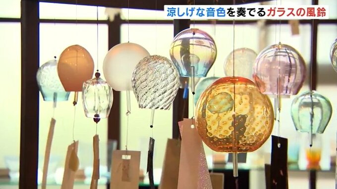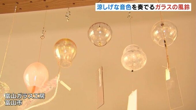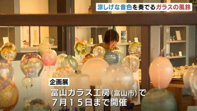 涼しげな音色を響かせるガラスの風鈴を集めた企画展が、富山市の富山ガラス工房で開かれています。