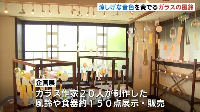 企画展では県内外で活躍するガラス作家20人が制作した、風鈴や食器およそ150点が展示・販売されています。